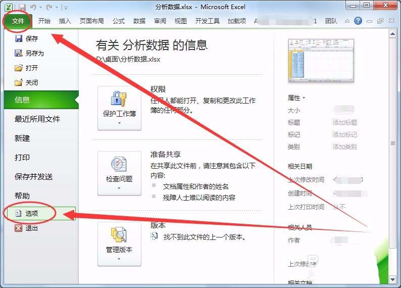 4、默认情况下,Excel表格没有数据分析选项,此时需要添加它。单击文件菜单中的选项,如下图所示。