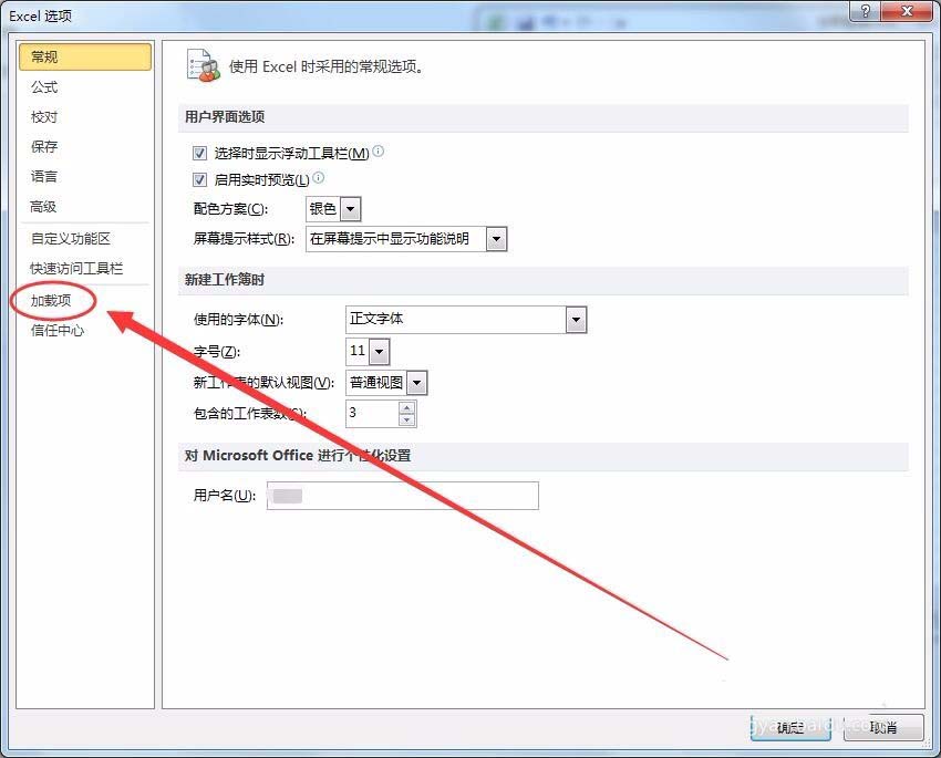 5、Excel选项中,选择加载项选项。