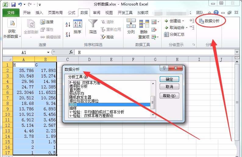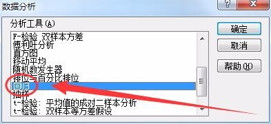 8、数据分析对话框中,选择回归选项。
