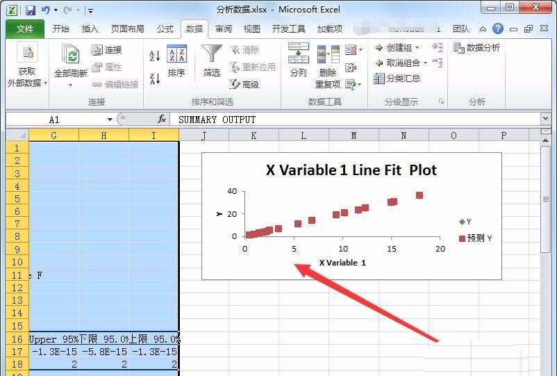 15、在表格的右侧,会显示线性拟合图。