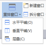 4、我们点开重排窗口以后就可以看到,重排窗口中有三个选项供我们进行选择,分别为水平平铺,垂直平铺,和层叠选项,如图