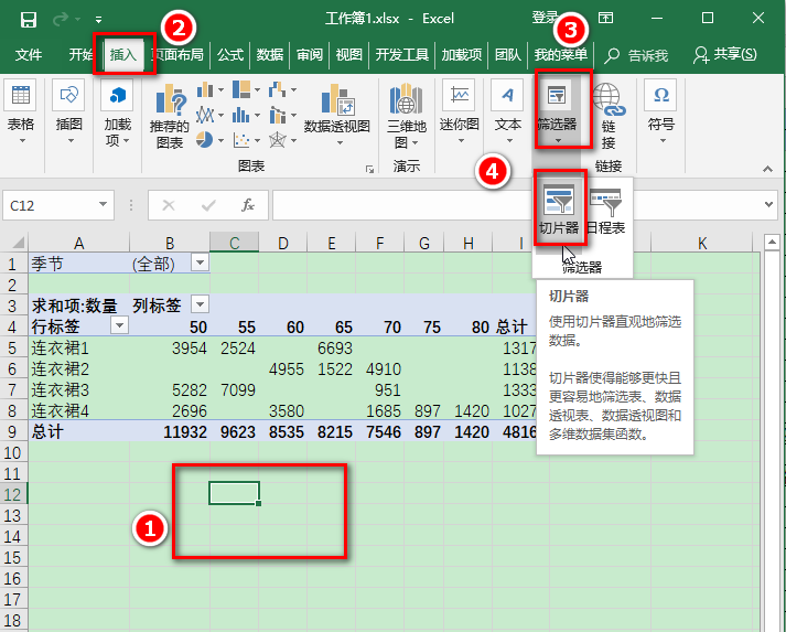 1、如图,按照编号顺序插入切片器。