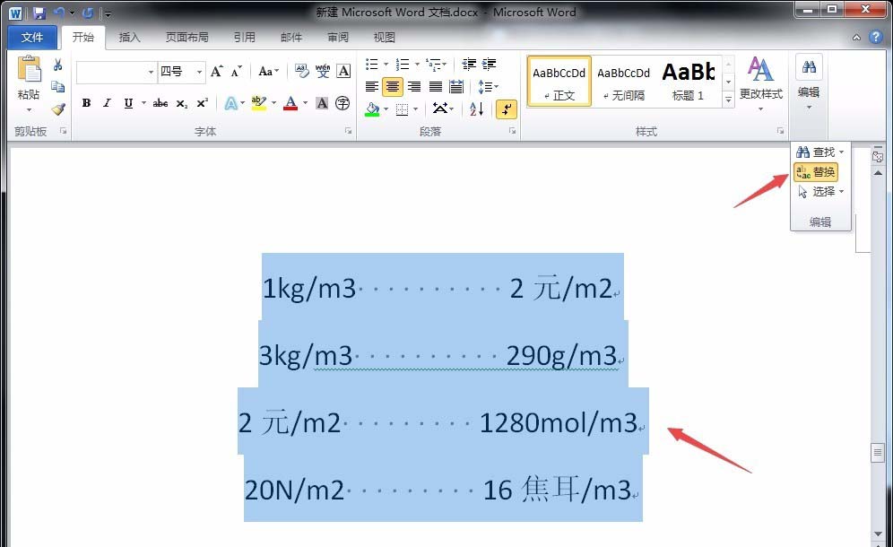 1、首先,将需要修改的文本内容全部选中,点击“开始”菜单下“编辑”栏中的“替换”命令,如图所示。