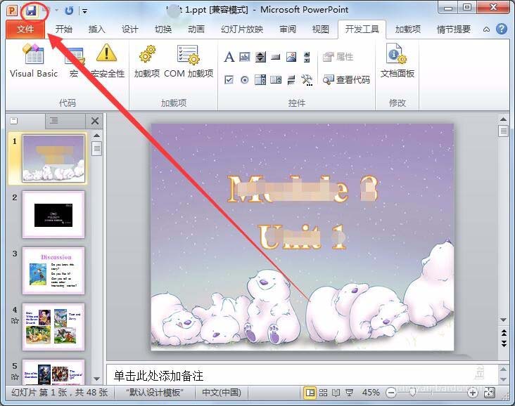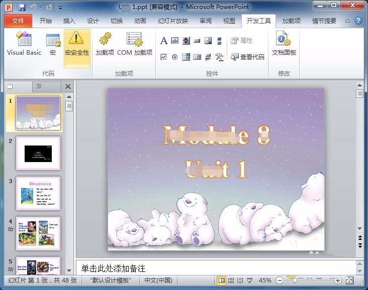 8、重新打开带有控件的PPT文件,再也不提示控件出错信息了。