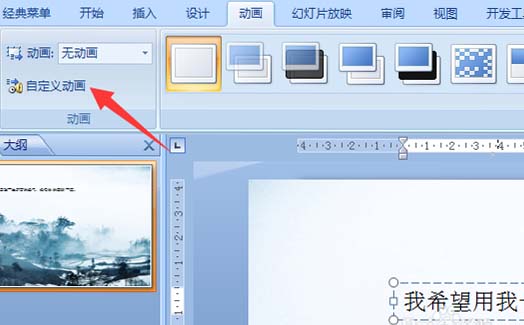 3、点击自定义动画。