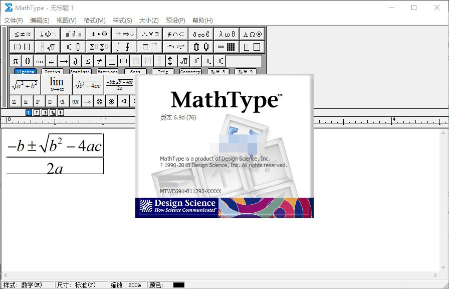 MathType 6.9d破解版是一款Windows和Macintosh的强大交互式公式编辑器,可让您为文字处理,网页,桌面出版,演示文稿,电子学习以及TeX,LaTeX和MathML文档创建数学符号,支持最新office2016,小编之前提供了MathType 6.9d中文破解版及英文破解版的下载地址,这里主要为大家MathType 6.9d注册码及激活方法,希望可以帮助到大家。