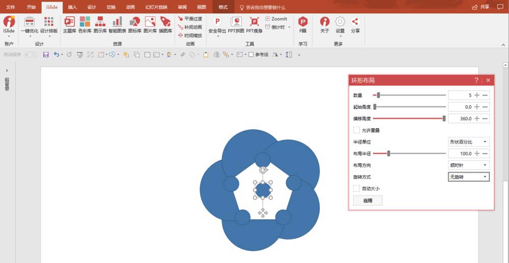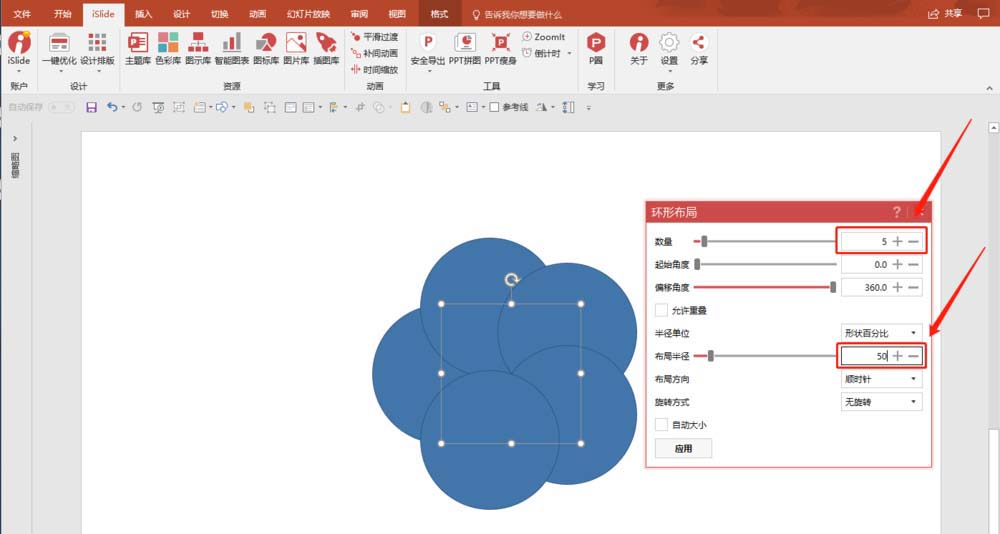 2、打开iSlide的【环形布局】工具,设置好参数。