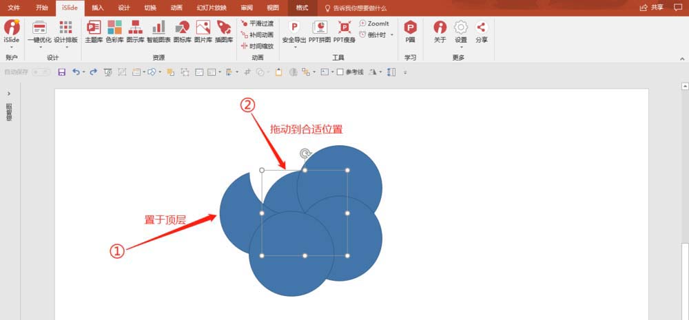 4、将①置于顶层,②拖动到合适的位置