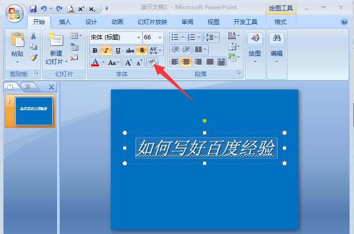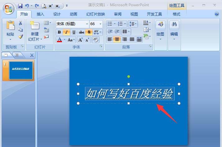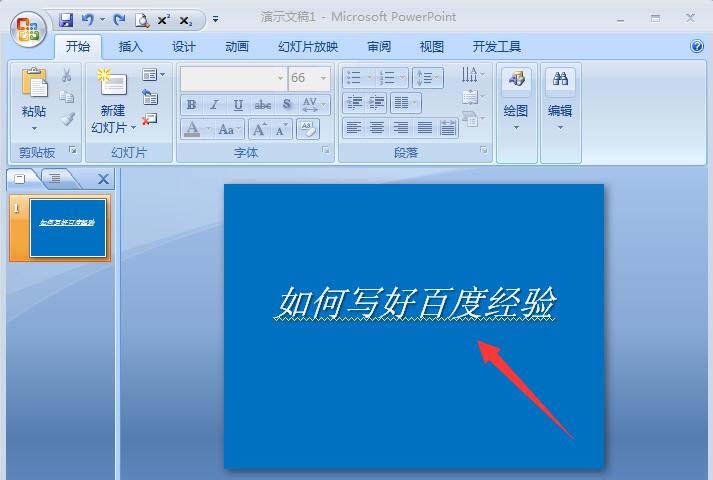 6、点击以后,我们回到幻灯片,看到刚才的文字已经变成了很简单的初始模式,如图所示。