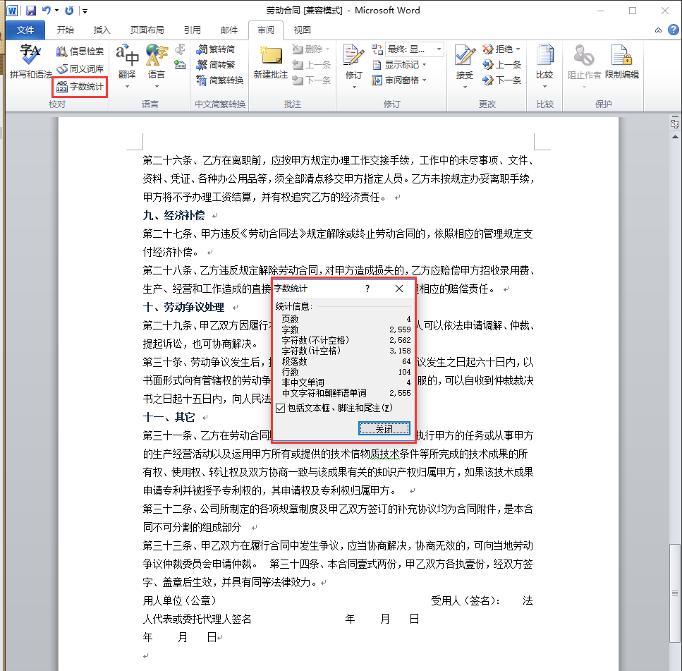 单击审阅选项卡中字数统计,通过弹框可以看到页数,字数,字符数,段落数,行数。