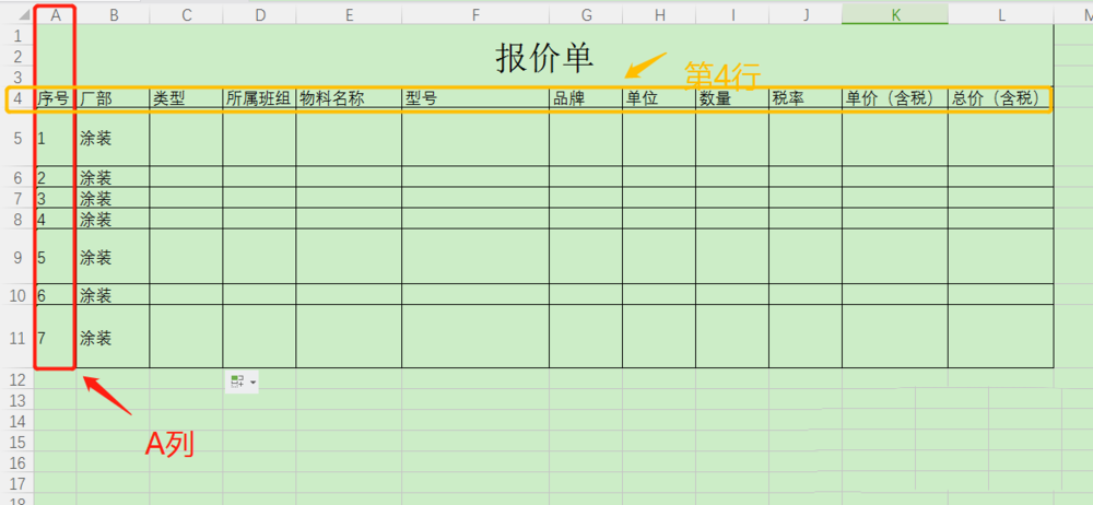 2、以上小编说的锁定就是将单元格保护起来,以防止被他人随意改动,不过后来小编发现所谓的"锁定"可能还有另外一层意思,那就是将某几行或者某几列单元格锁定,以防止这些单元格随着鼠标滑动而看不见,一般来说第一行和第一列被锁定的概率大,那么如何锁定呢?比如我们要锁定下图中的第A列和第4行应该如何操作呢?