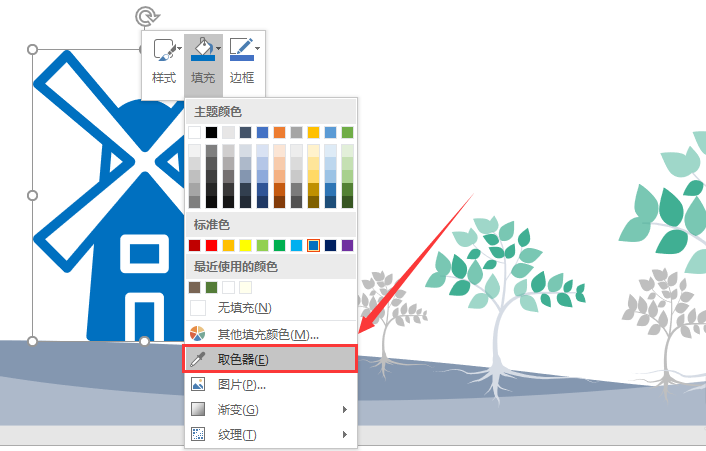 ppt中插入的图片,想要拾取图片中的颜色,该怎么吸取呢?我们可以使用取色器来实现,下面我们就来看看详细的教程。