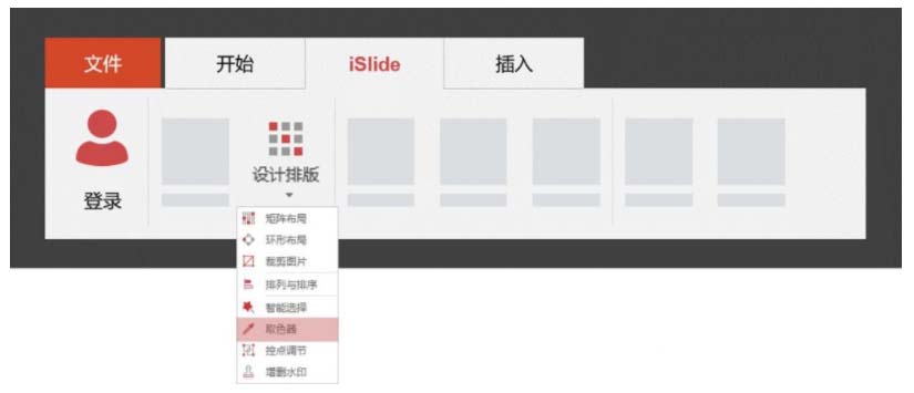6、PPT自带的取色器支持单个颜色的吸取,如果想要不只单色而是整个配色方案呢。下面介绍的iSlide的取色器使用方法。
