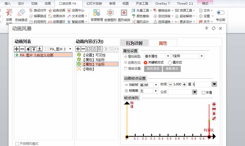 5、修改第二个x坐标为y坐标,设置第一帧值为#ppt_w*cos(2*pi*$),第二帧值也为1.