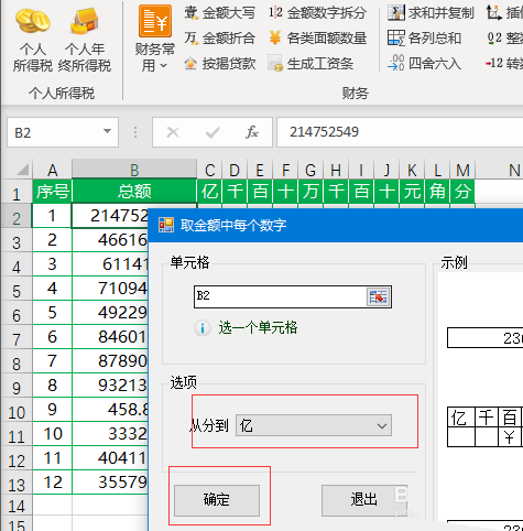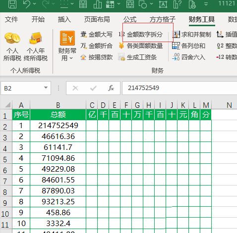 3、点击【金额数字拆分】