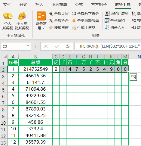 以上就是Excel将财务金额拆分到对应单元格中的教程,希望大家喜欢,请继续关注脚本之家。