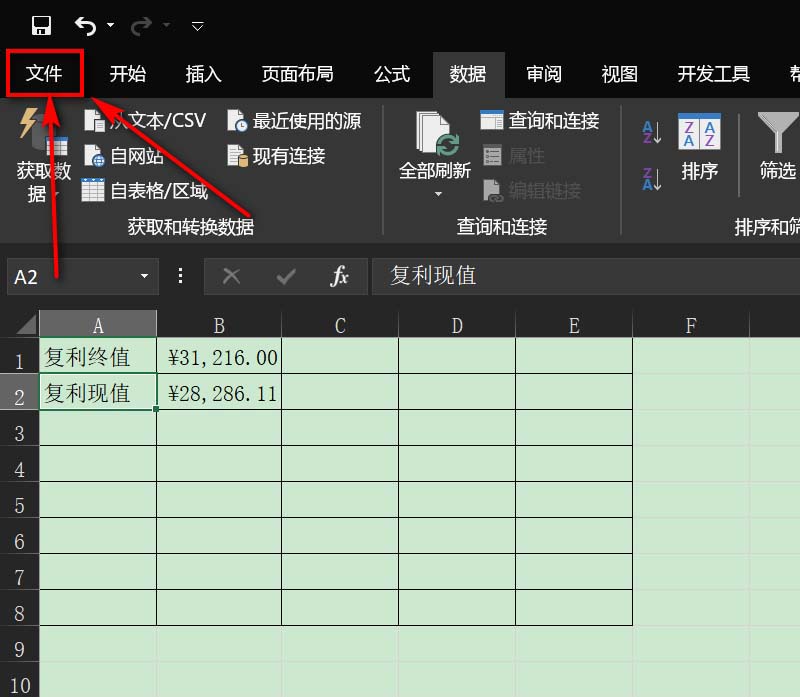 1、Excel表格,点击左上角的文件。