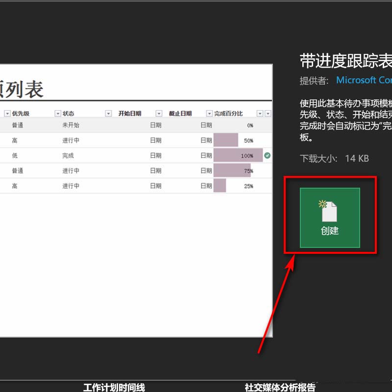 4、查看工作表的具体内容,点击右侧创建。