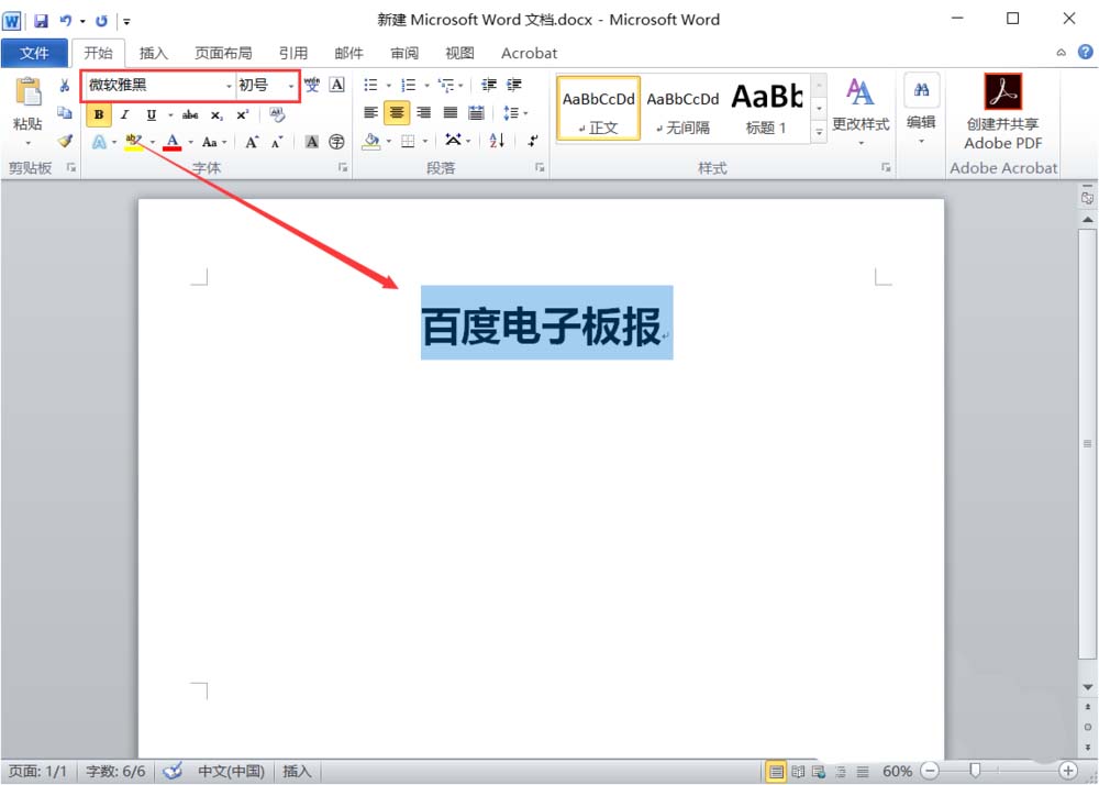 2、输入“板报标题”,设置“文字的大小、尺寸、颜色”。