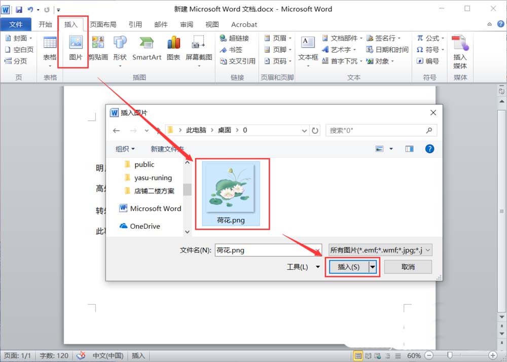 4、点击“插入”-“图片”,选择“图片”后,点击“插入”。