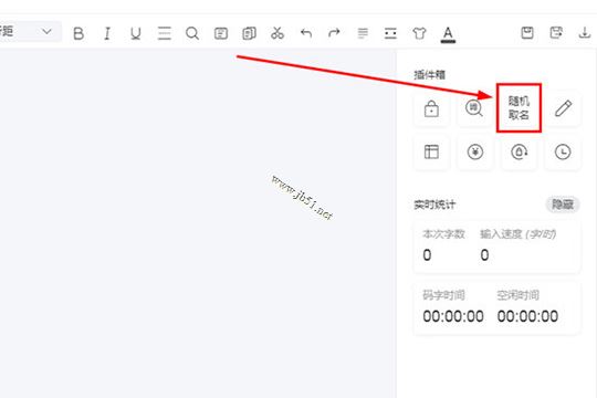 2,点击某个正在创作的书籍作品进行到写作界面,用户可以在插件箱中找到刚刚的随机取名功能,此功能功能支持人名、地名、功法书籍以及天才地宝等名字的随机生成,用户还可以在收藏列表中收藏你喜欢的名字供你下次使用,如下图所示:
