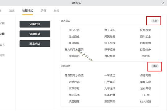 4、除了人名之外,你还可以根据自己的需要生成地名、招式等内容,用户可以同时生成多个同样的类型,在其中挑选自己需要的那个,你还可以对不需要的部分进行移除操作,如下图所示: