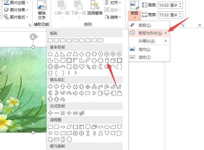 6、点击裁剪为形状,点击圆柱体即可。