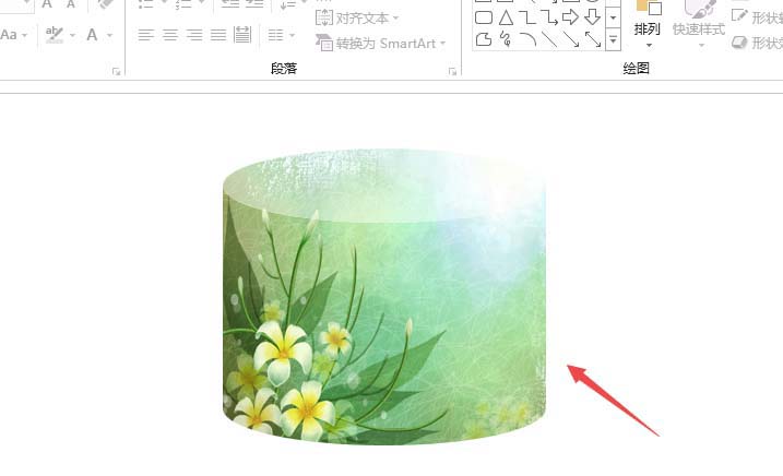7、结果如图所示,这样便将图片设置成圆柱体了。