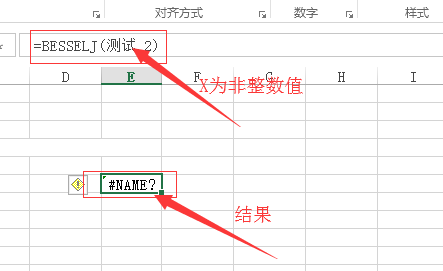 2、若是 N 是非数值型,则 BESSELJ 将返回错误值:#NAME! 。
