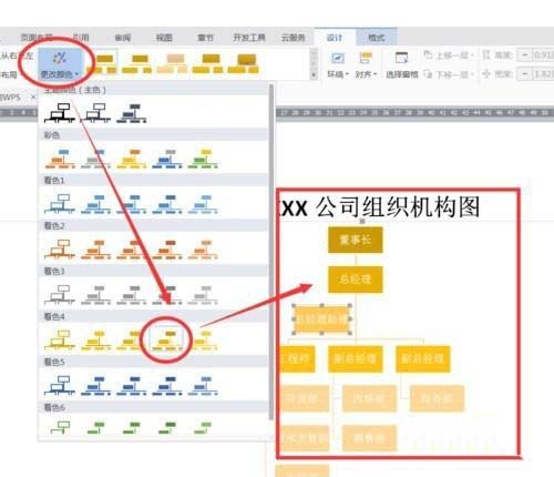 3、点击左上角的“更改颜色”对组织机构图进行美化。