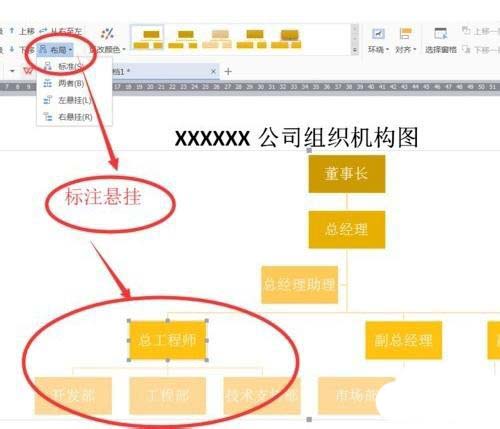 5、比如选择“二者”,机构图的树状结构下部宽度增加,显得更加美观大方。