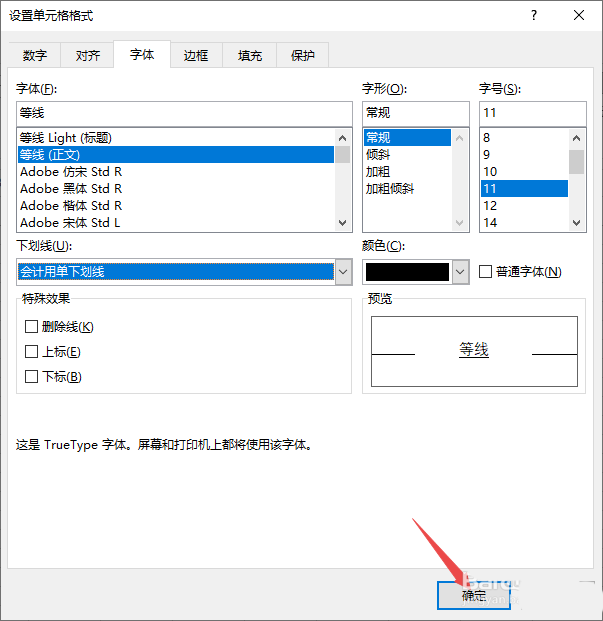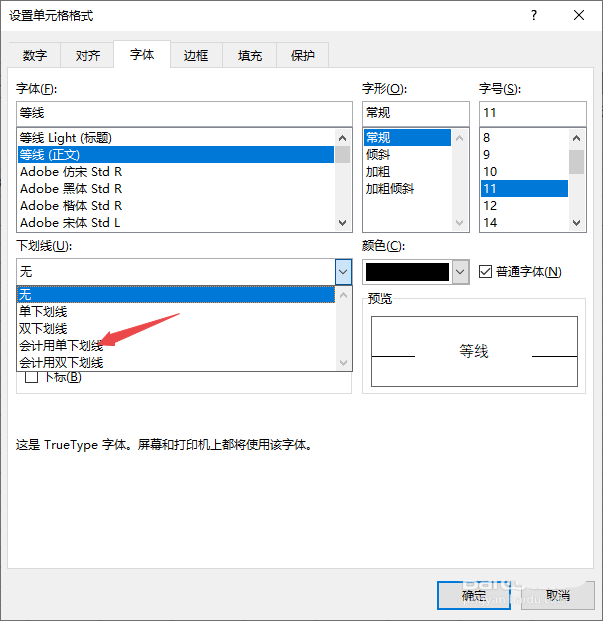 6、之后点击选择会计用单下划线;