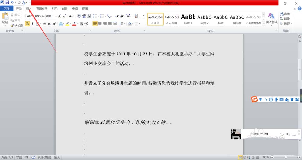 2、在里面找到位于开始旁边的插入按钮,如下图所示。