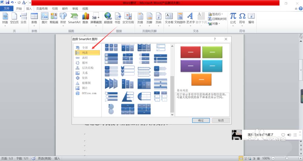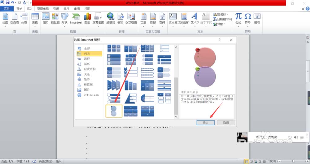 5、在里面找到左侧的列表选项卡,点击进入,找到垂直圆形列表,如下图所示。