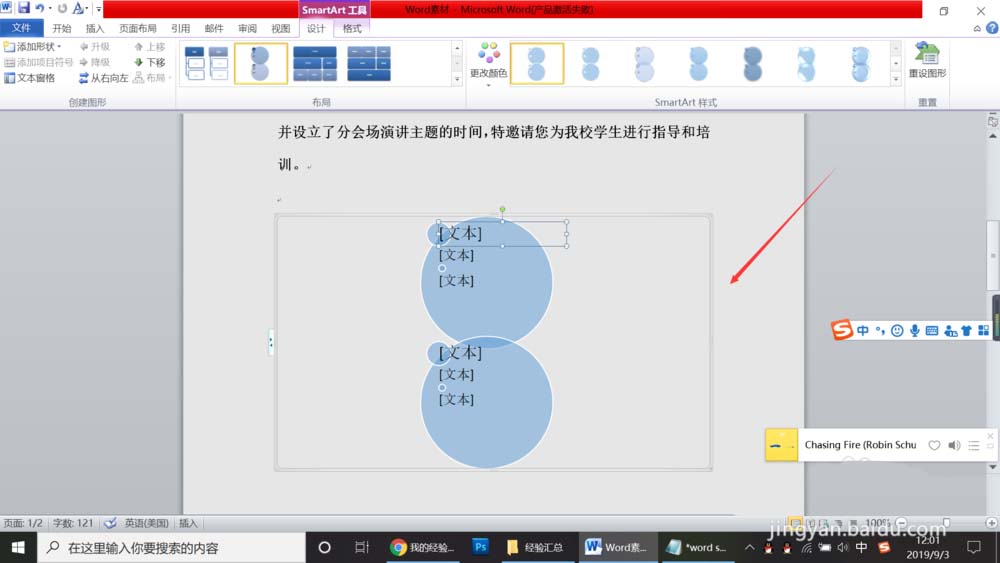 6、点击确定就可以了,然后就看到自己的垂直圆形列表这个smart art图形已经插入到自己需要插入的页面上了,如下图所示。