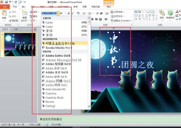 6、输入关于中秋节的文字到文本框里面,可以改变字体的大小。