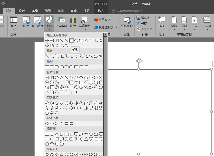 1、点击【插入】-【形状】-【矩形】,插入后的效果如下图所示: