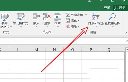 2、接下来我们点击excel2019工具栏上的“排序和筛选”的下拉按钮。