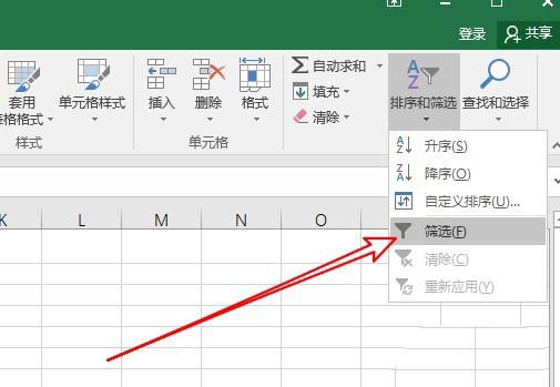 3、然后在打开的下拉菜单中我们点击“筛选”的菜单项。