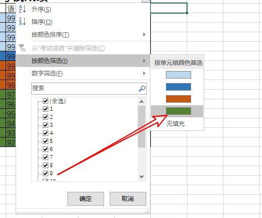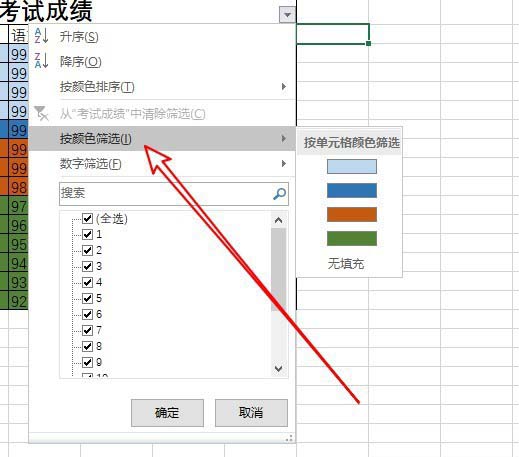 5、然后在打开的菜单中我们选择相应的要筛选的颜色