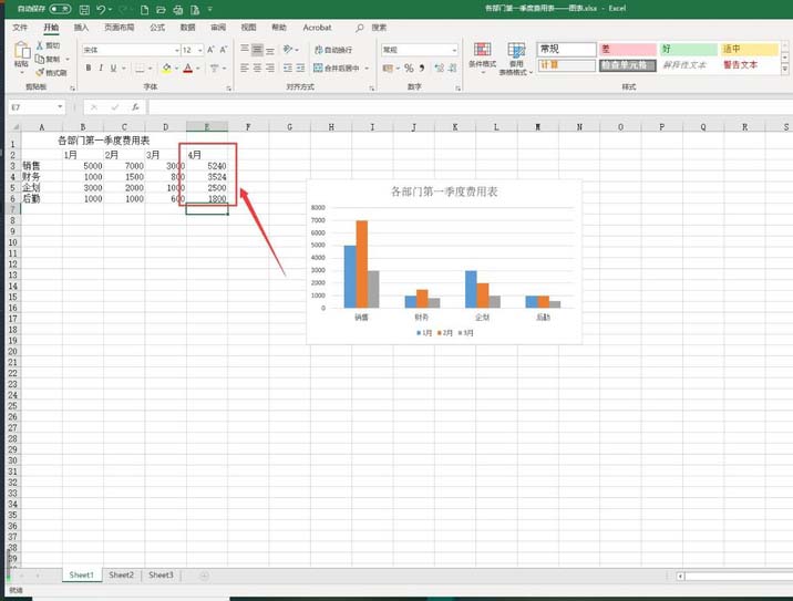 2、在数据区域添加四月的数据