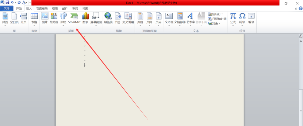 3、在插入选项卡下面找到的一行内容里面找到插图选项卡里面的smartart,点击进入,如下图所示。