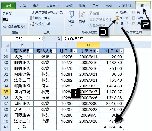 步骤2:单击列表任意单元格,再单击【表格工具】下的【设计】选项卡,勾选【汇总行】。