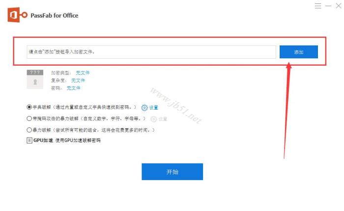 1、点击“添加”添加需要破解的文件