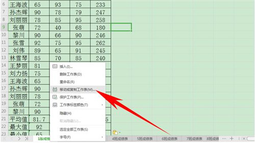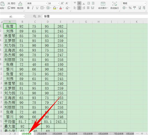 确定后,我们看到1班成绩表就已经作为一个独立的工作表显示在区域窗口了