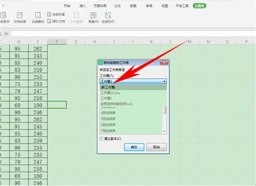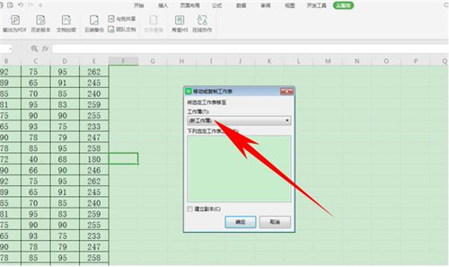 弹出移动或复制工作表的对话框,在工作簿的下拉菜单当中选择新工作簿。
