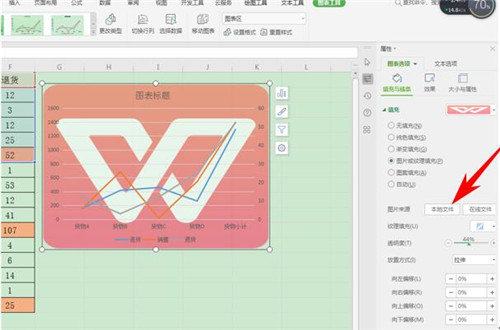 还可以插入图片背景,单击图片来源处的本地文件,选择图片插入即可。