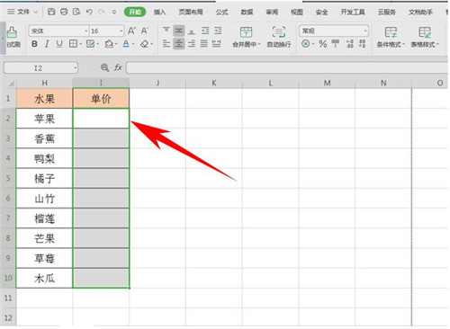 首先,我们选中需要输入数据的单元格,如下图所示。