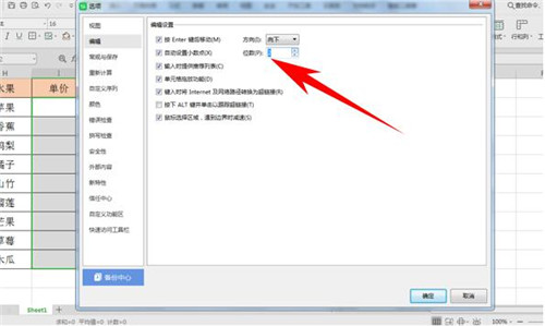 弹出选项的对话框,选择编辑,然后在编辑设置里找到自动设置小数点,将位数设置为2,单击确定。