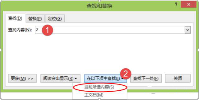 查找内容这里输入2,查找范围为[当前所选内容]